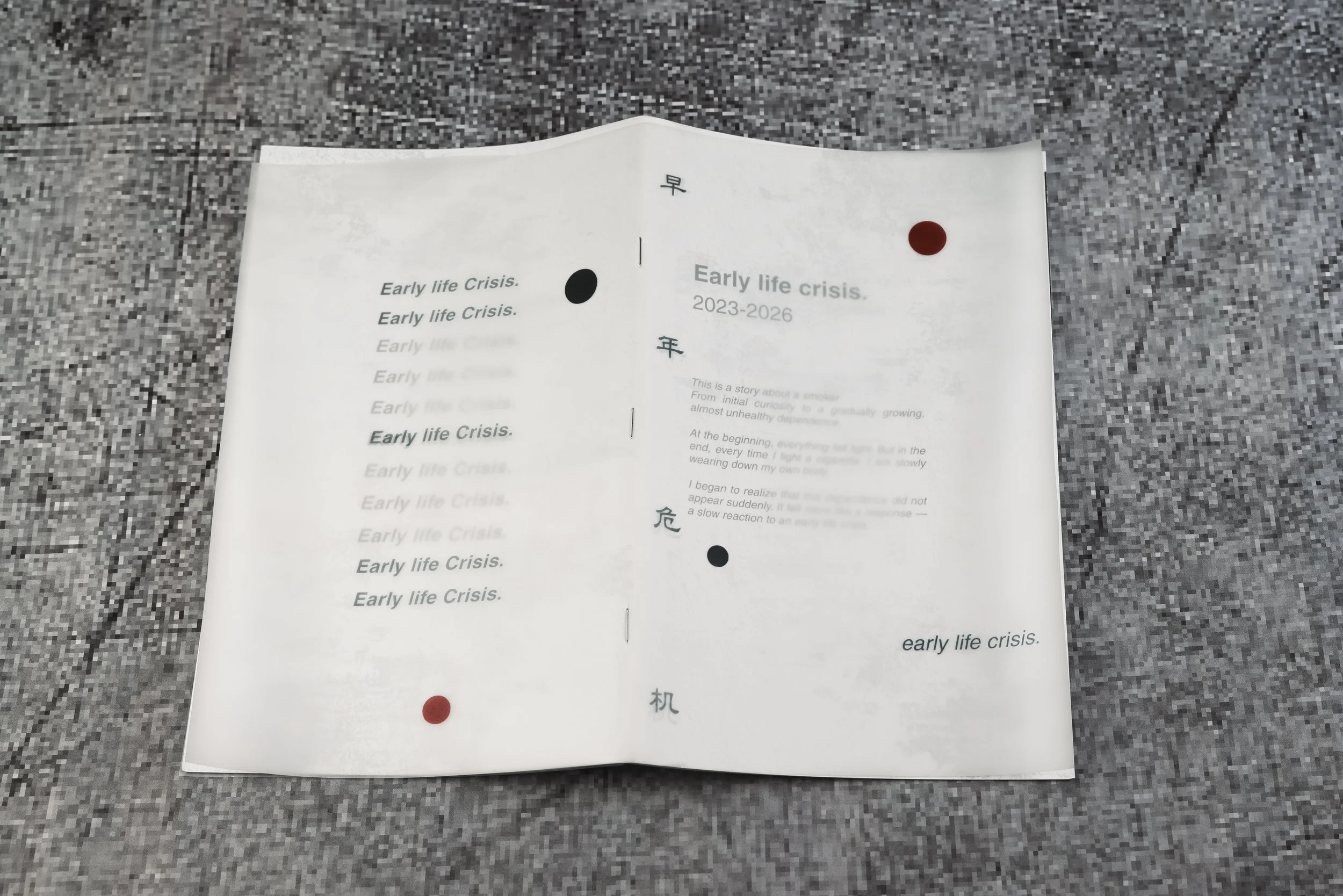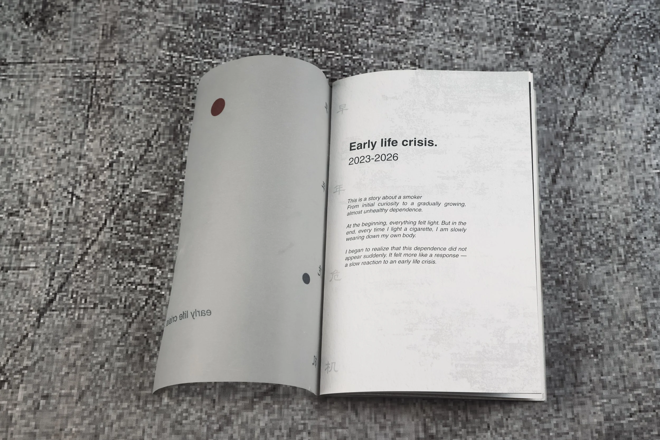 “Early life crisis is the loneliness of arriving in a new city, the hesitation of buying your first cigarette, and using smoking as a habit to calm yourself—while everything still feels uncertain.”