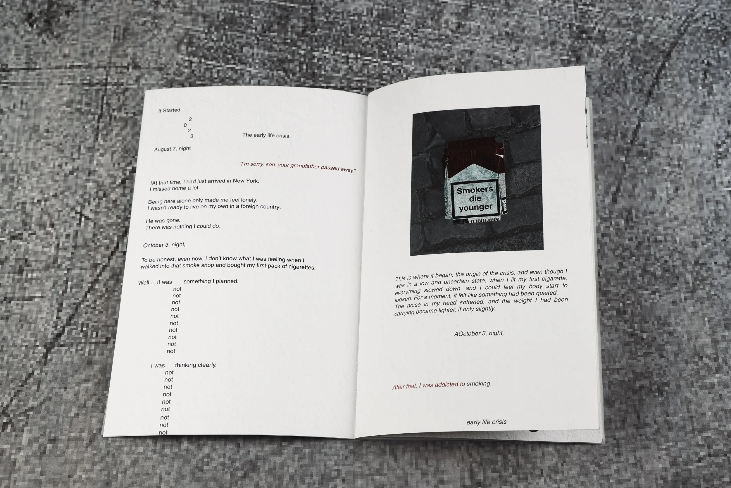 It records my journey as a smoker—from hating cigarettes to depending on them.